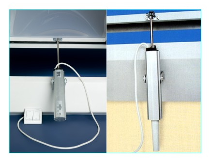 A clarabóia é equipada por um motor elétrico que estará conectado à rede e através de um interruptor localizado na parede, permite a abertura e o fecho da clarabóia no ângulo desejado.