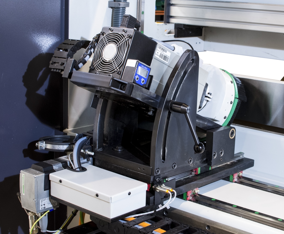 Dispõe de um cabeçal inclinável manualmente, o qual permite trabalhar num ângulo até 45º.