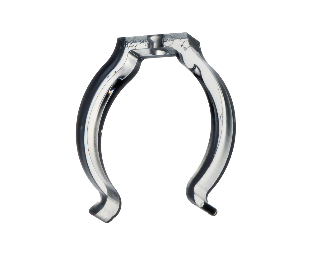 Clip em policarbonato transparente.