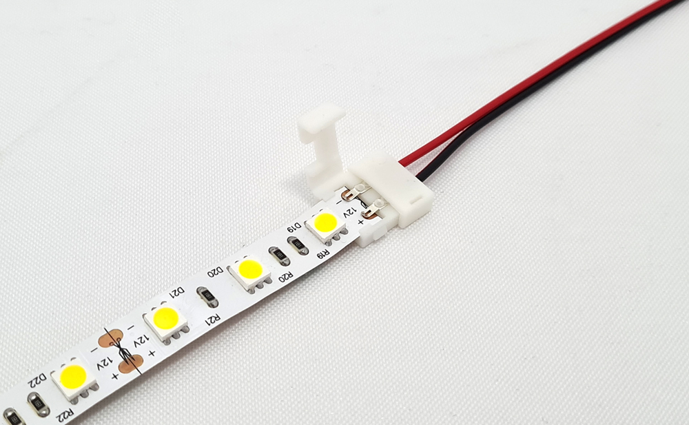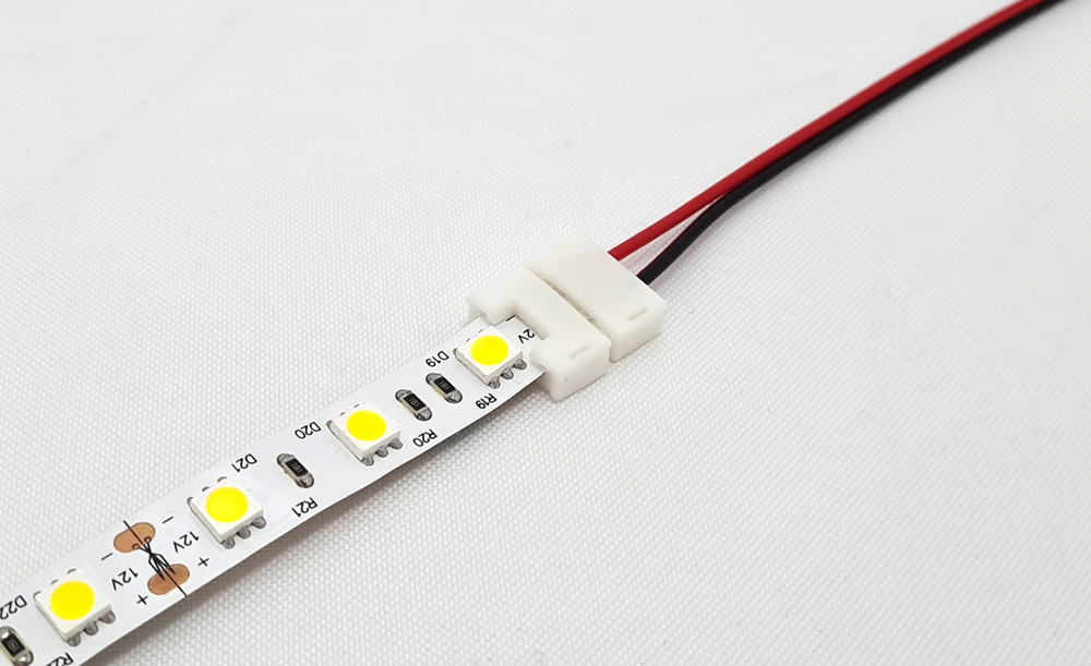 Conector flexível para fita LED SMD monocolor não estanque com 8 ou 10 mm de largura.