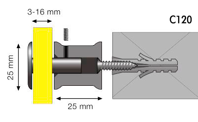 MAXI (25 mm): para placas grandes ou para aplicação de duas placas tipo sandwich até uma espessura máxima de 16mm.