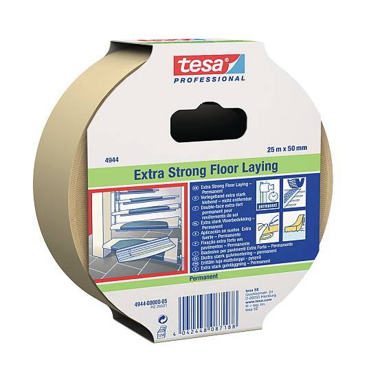 Fita bi-adesiva têxtil para alcatifas transparente permanente e extra forte.