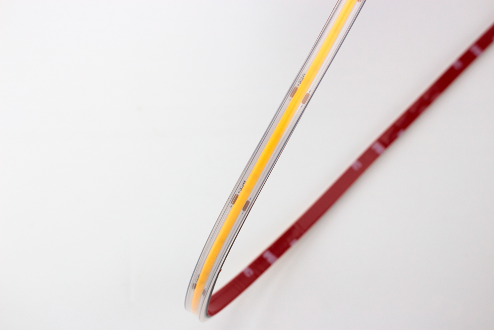- Fita LED COB flexível estanque IP67 com silicone. Iluminação contínua e uniforme sem pontos de luz.