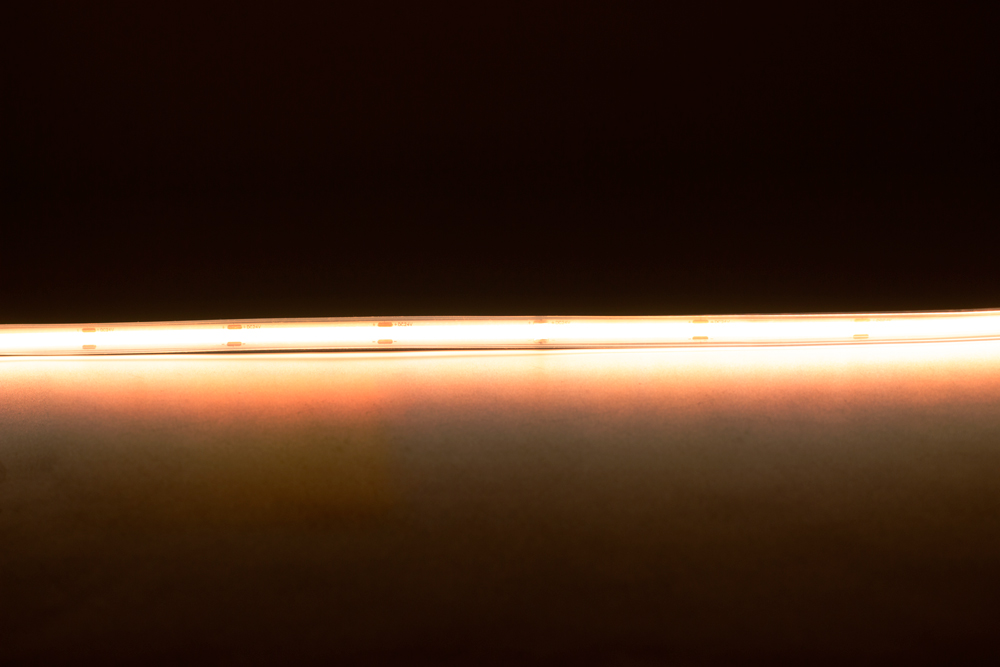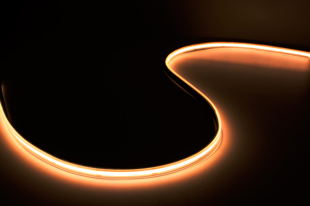 A fita LED COB (chip on board) é uma fita sem pontos de luz, com iluminação contínua e uniforme, ideal para usar em qualquer perfil LED.
