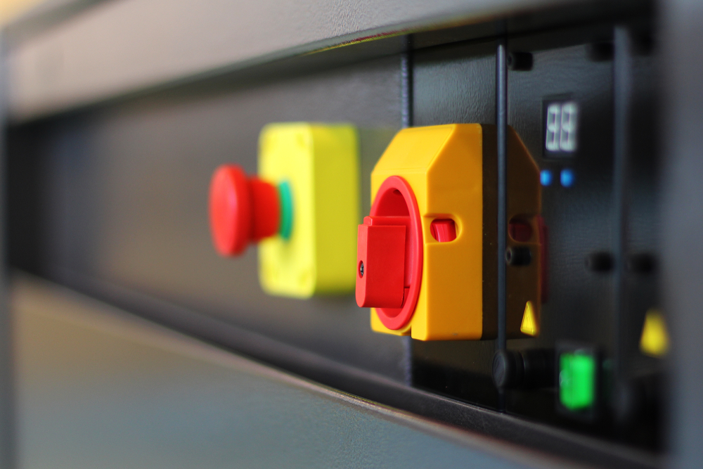O controlo pneumático da parte superior é fornecido com um temporizador eletrónico, pedal, dois botões de emergência e barras de aperto ajustável.