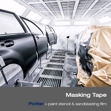 Películas auto-adesivas removíveis destinadas a cobrir superfícies para pintura com serigrafia/ rolo de tinta à base de água ou solventes e máscaras (sandblast) que resistam ao processo de arear os vidros.
