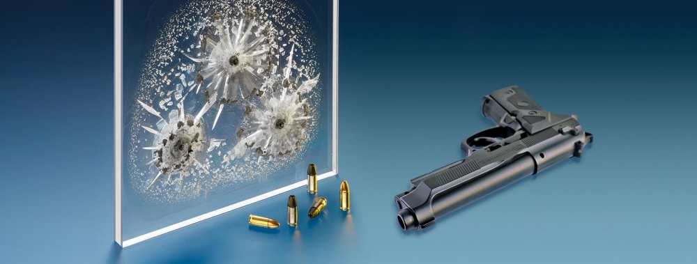Vidro à prova de bala para uma variedade de aplicações que exijam a máxima segurança.