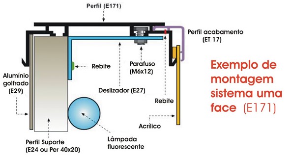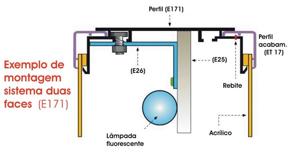 Perfil de alumínio com 170 mm para caixas de dupla face.