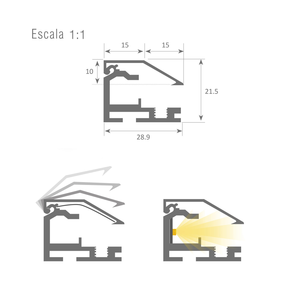 • Perfil LED Alfa 2, Perfil Base, Anodizado Prata