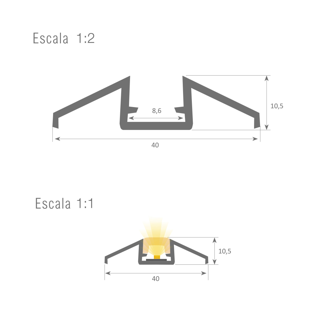 Perfil LED Zurich com 2,40 metros, em alumínio anodizado prata.