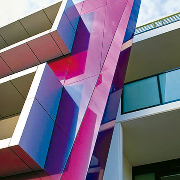 Ideal para fachadas e aplicações de longa duração no exterior. Os painéis FR (B1) são compostos por um núcleo de polietileno resistente ao fogo, adicionado de cargas minerais, o seu acabamento PVDF prolonga a sua vida útil no exterior.