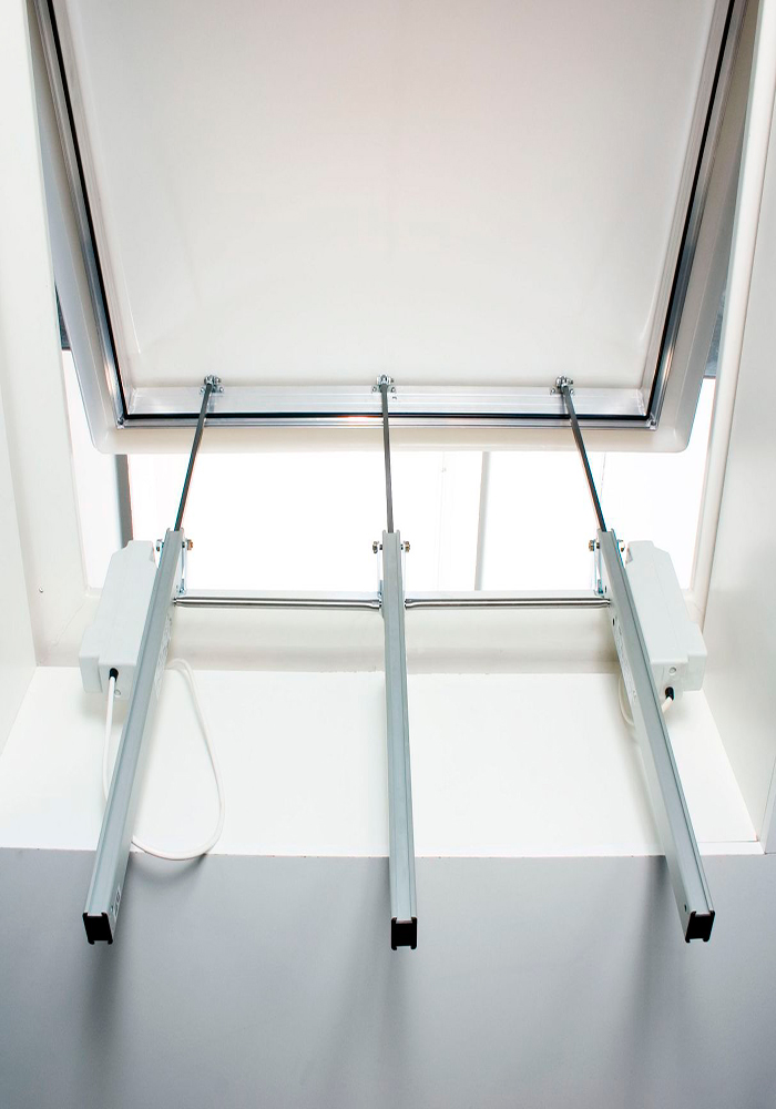Estes sistemas garantem estabilidade e são especialmente indicados para a abertura de clarabóias e janelas de grandes dimensões: