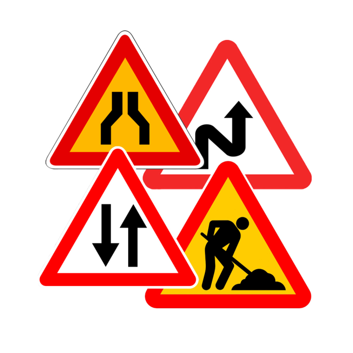 Sianis de trânsito triangulares, em chapa galvanizada.