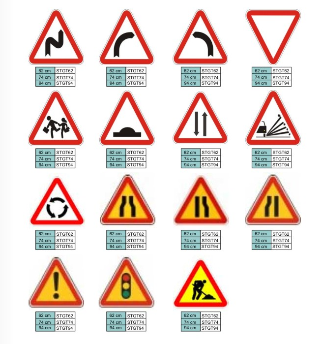 Sianis de trânsito triangulares, em chapa galvanizada.