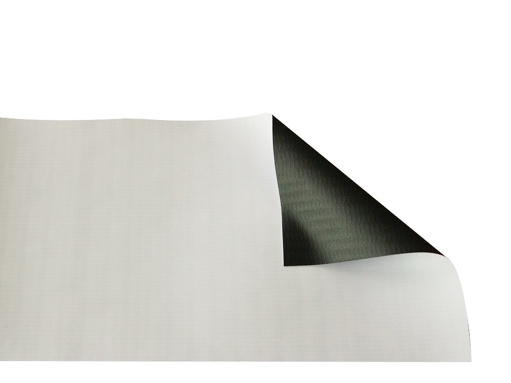 Tela BLOCKOUT laminada, com 440 gr/m2. Preta por trás e com acabamento mate.