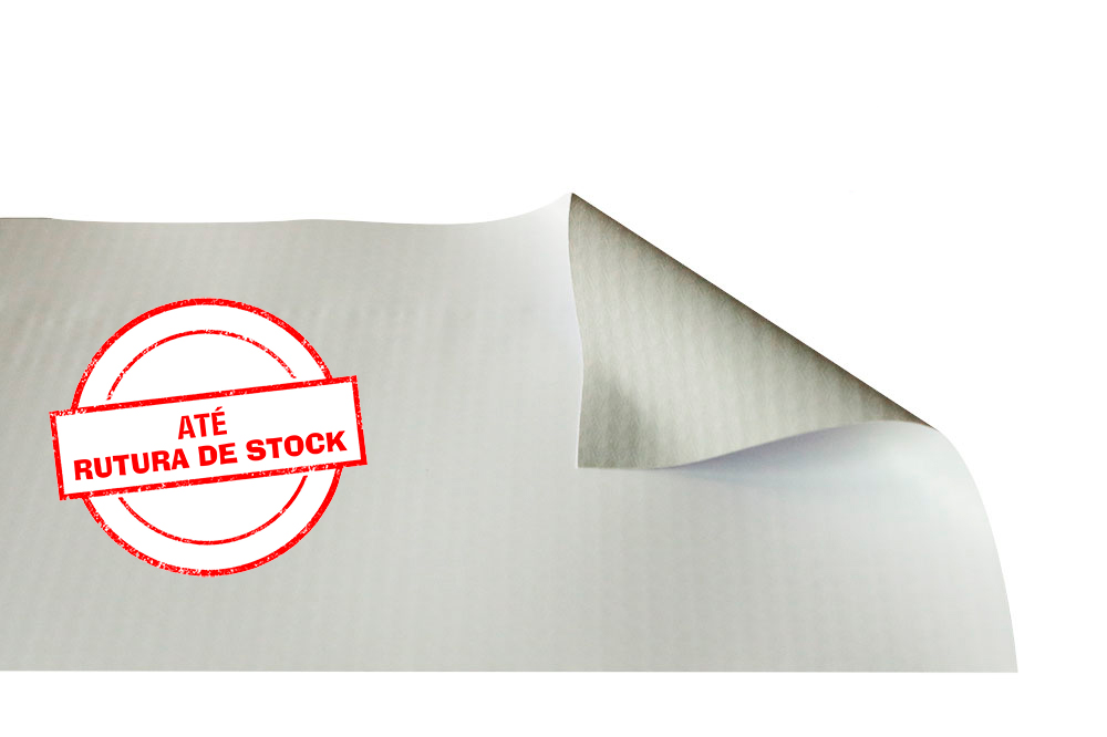 Tela BLOCKOUT laminada, com 440 gr/m2. Cinza por trás e com acabamento mate.