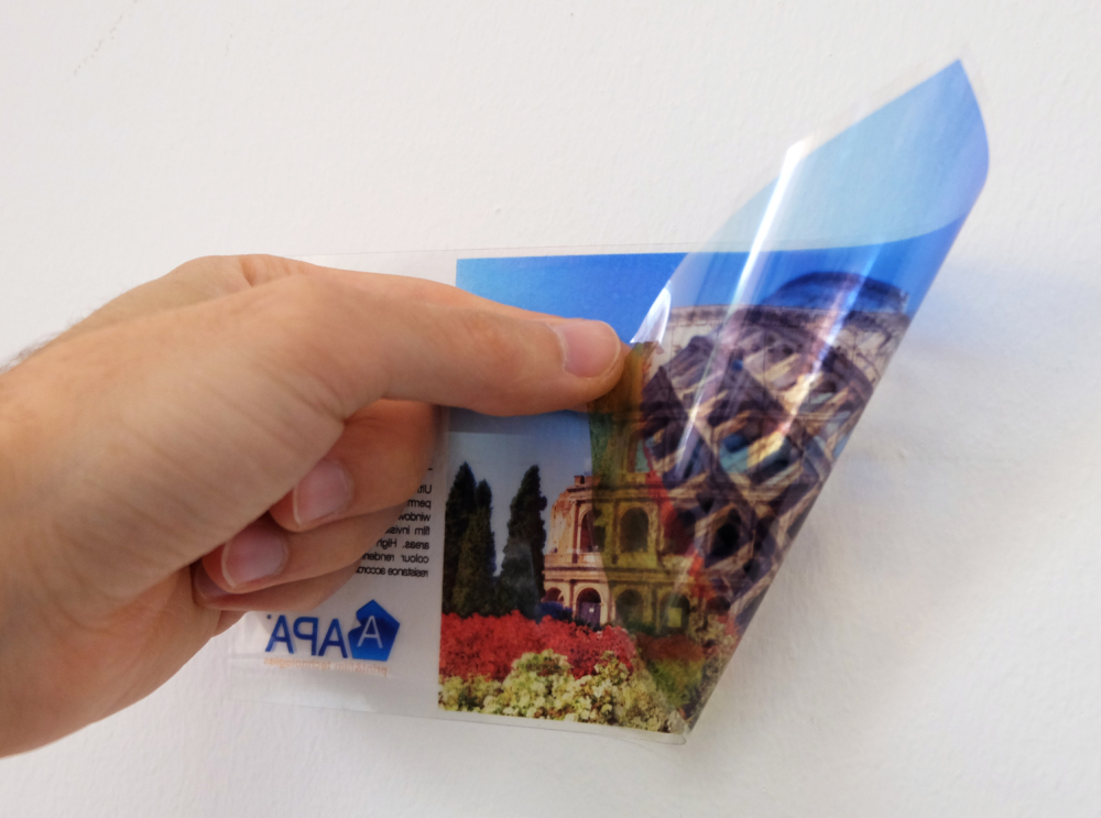 Película auto-adesiva ultra transparente de elevada conformabilidade.